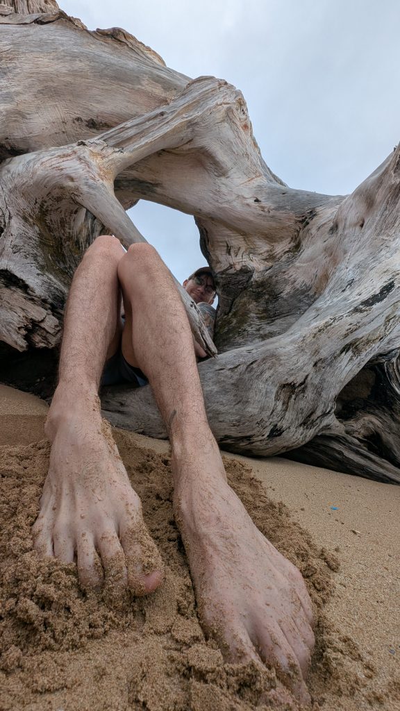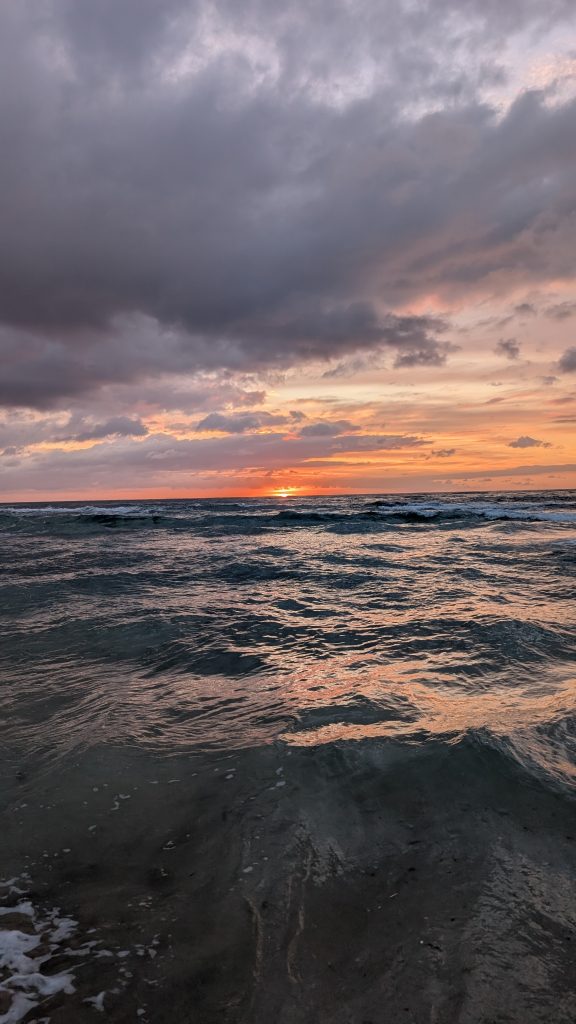 perhaps the greatest treat of all though……… was that actually before any of this, i woke up at 3:30AM and hung out alone on the beach for hours in the pitch black darkness looking at the stars and getting scared by different driftwood logs until sunrise. sunrise made me go “wow” and “no way” and “are you freaking serious” today. because i was sitting my ass in the cold wet sand and flopping about on logs and running and rolling etc etc, once i got in the water at sunrise (shark feeding time oopsie!!!!!) it felt soooo warm and nice.