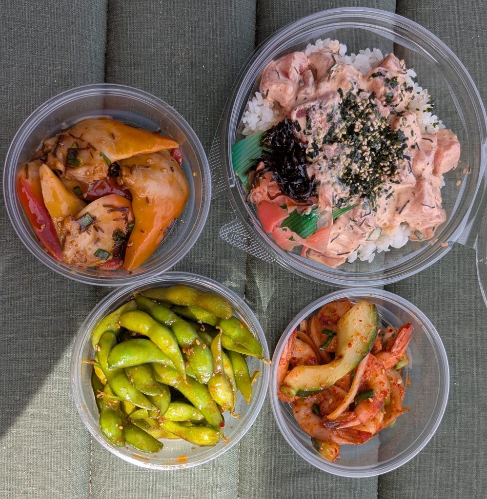 lata i snuck off by myself to get pupu and poke from Hononiki Seafoods because nobody else I’m here with likes fish!! when i got there there was a line of locals out the door. i made friends in line who recommended the hokkigai clams (top left) which BOPPED!!!!! i love eating.