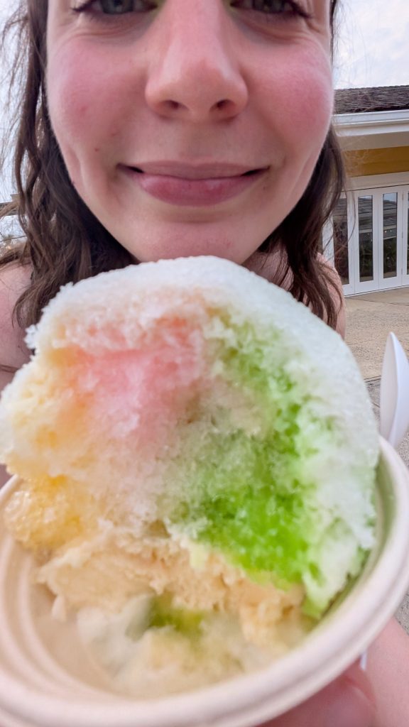 ok THEN EVEN LATAAAA we got shave ice which i had never had before!!!! and didn’t know!!! that there’s ice cream in the bottom! yay!!!!! i got honeydew lychee and pineapple flava with haupia on top. it seems as though i simply love fruit.